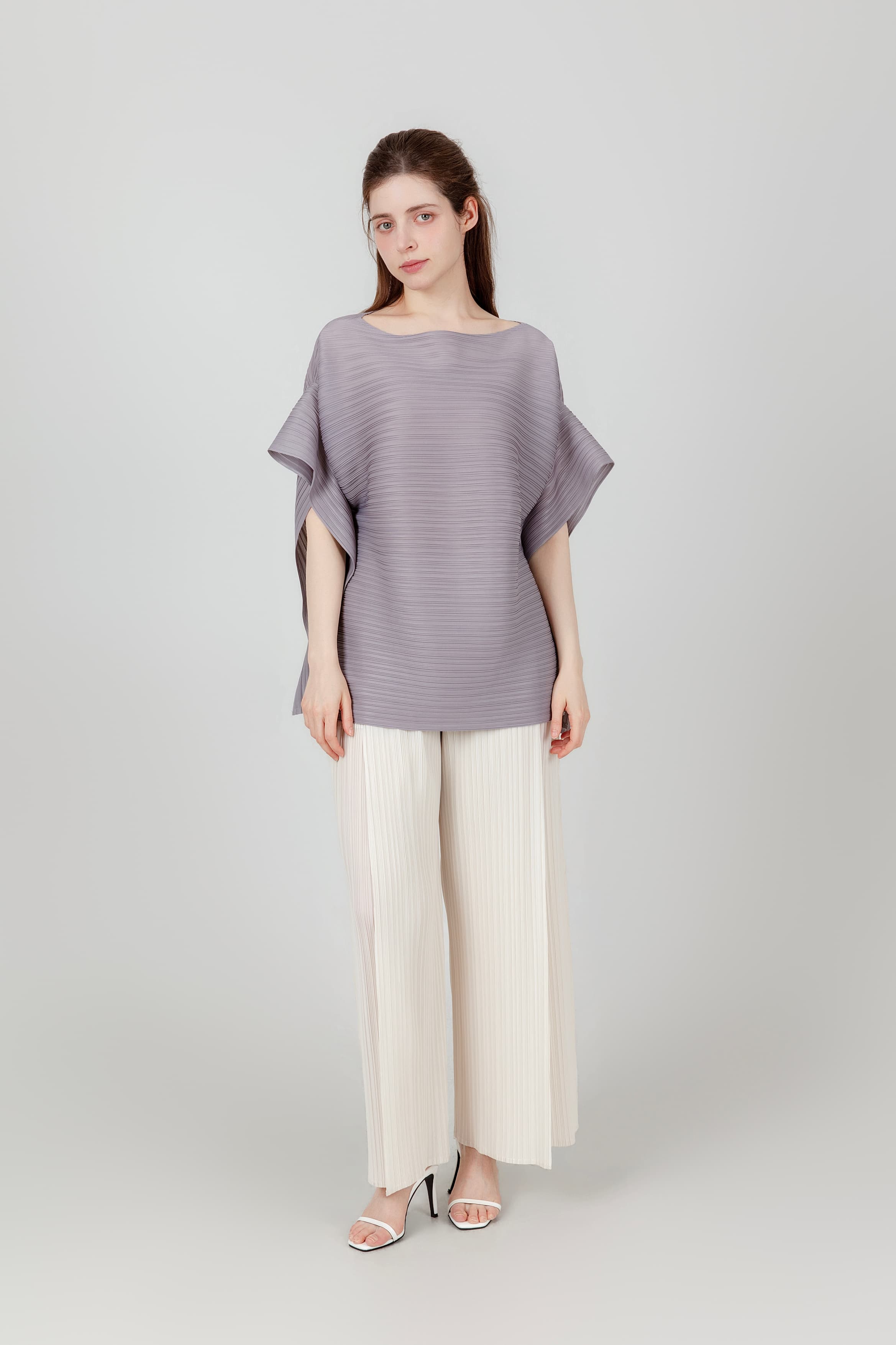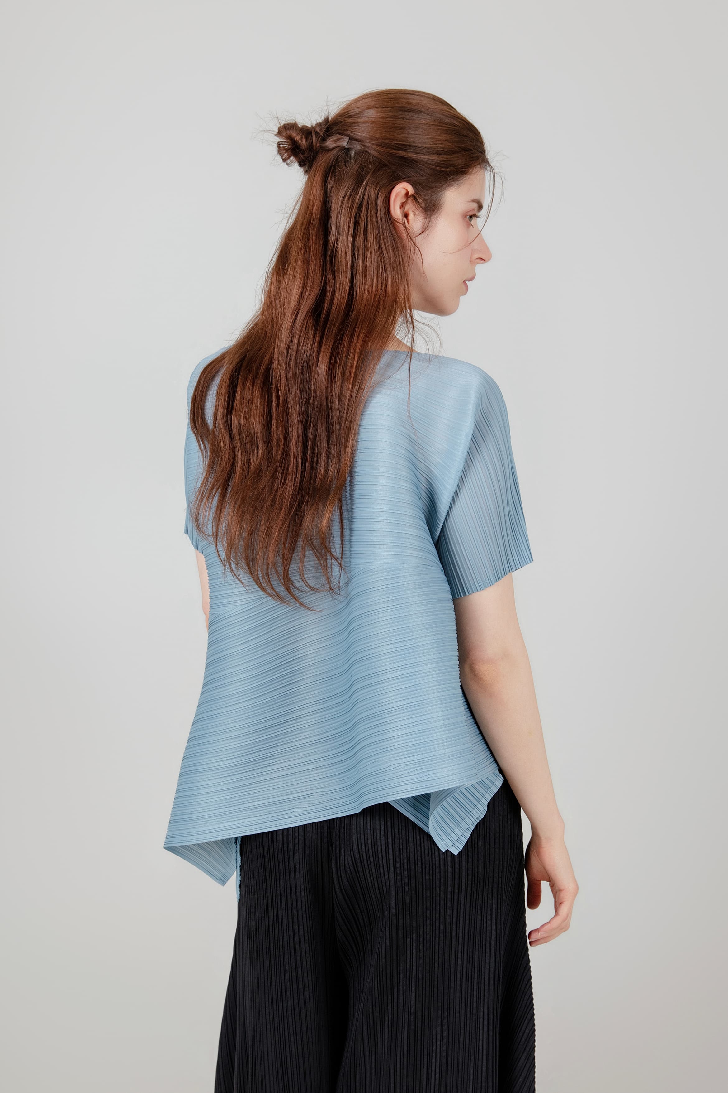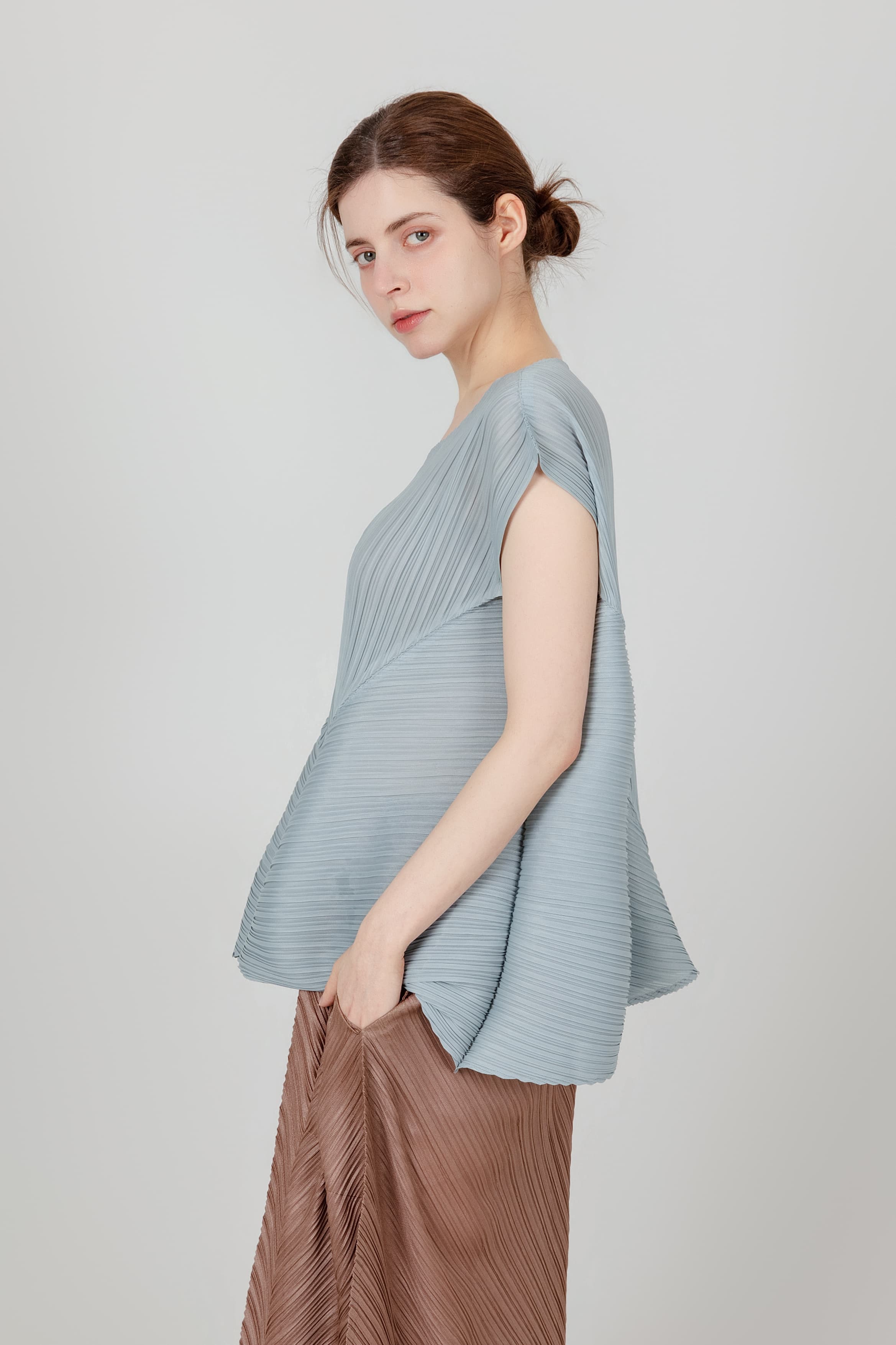 앞트임 반팔 플리츠 블라우스