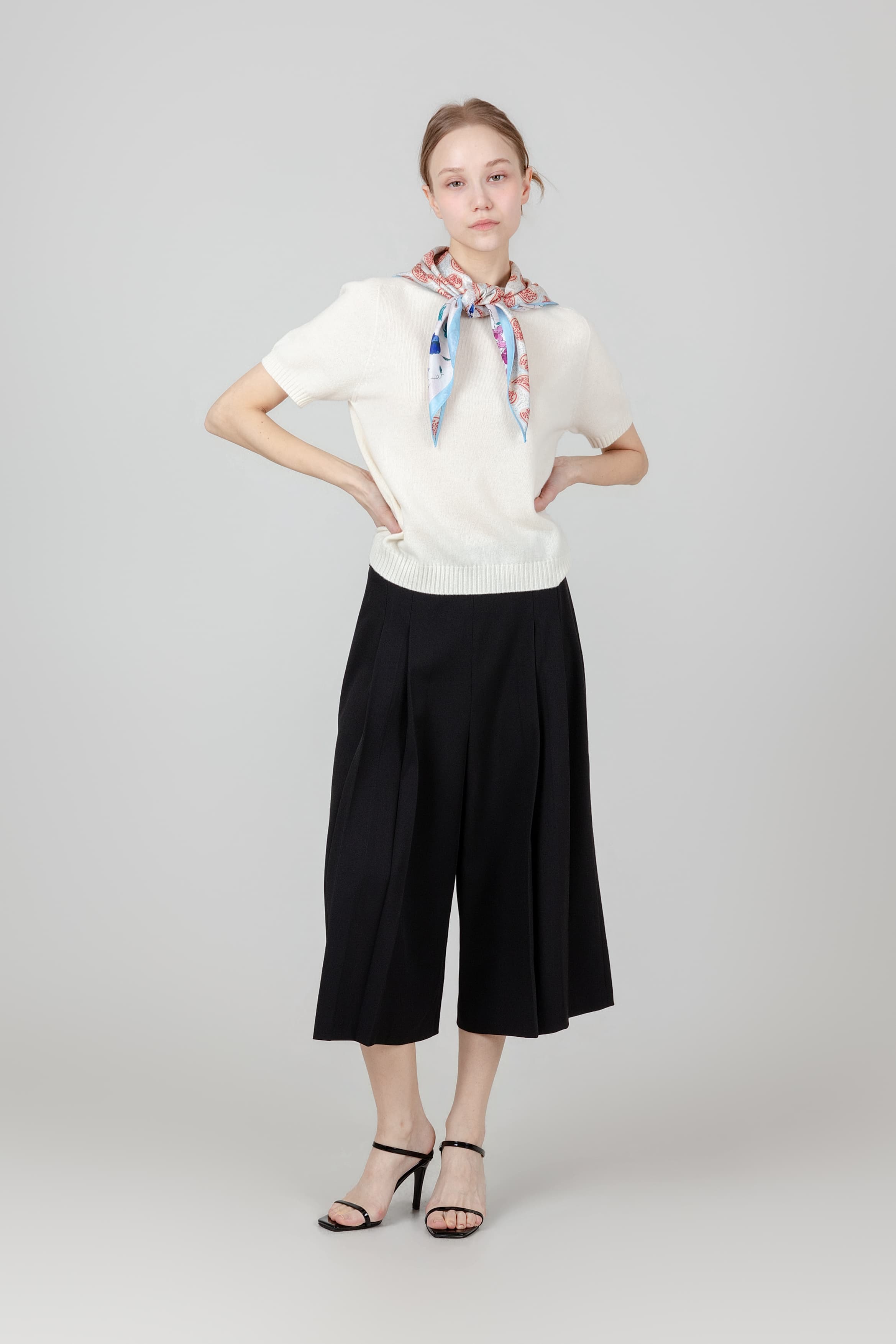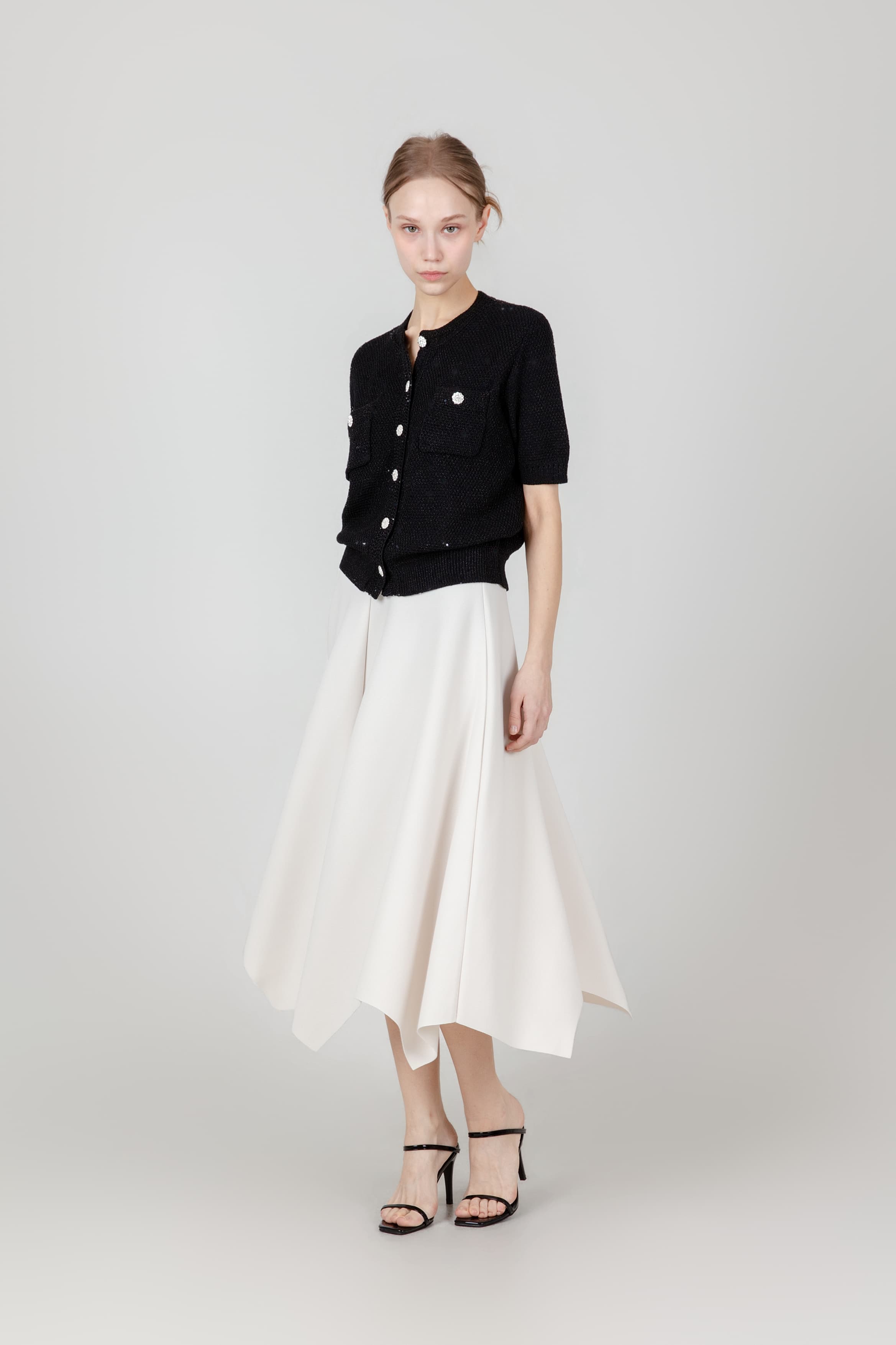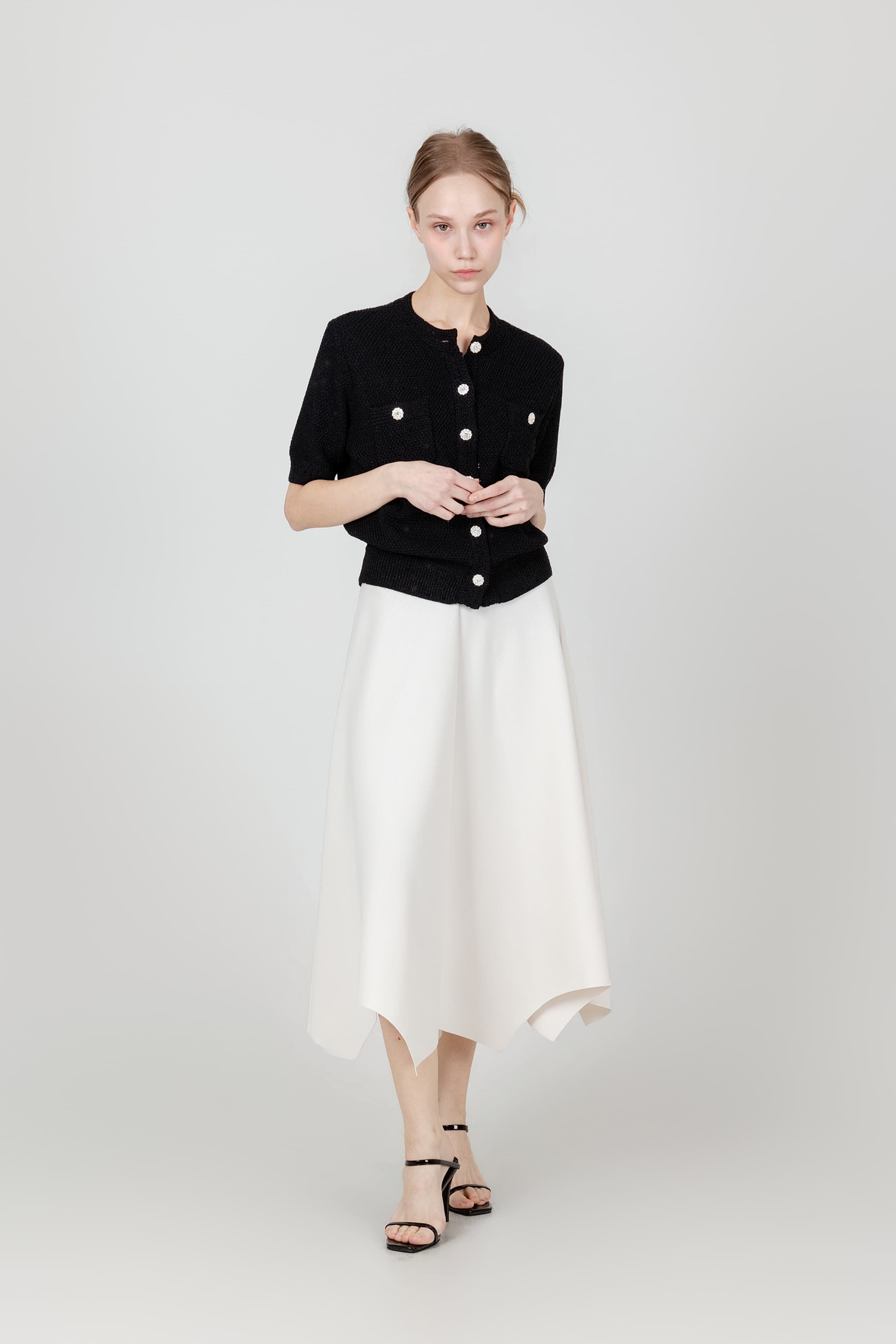 앞트임 반팔 플리츠 블라우스