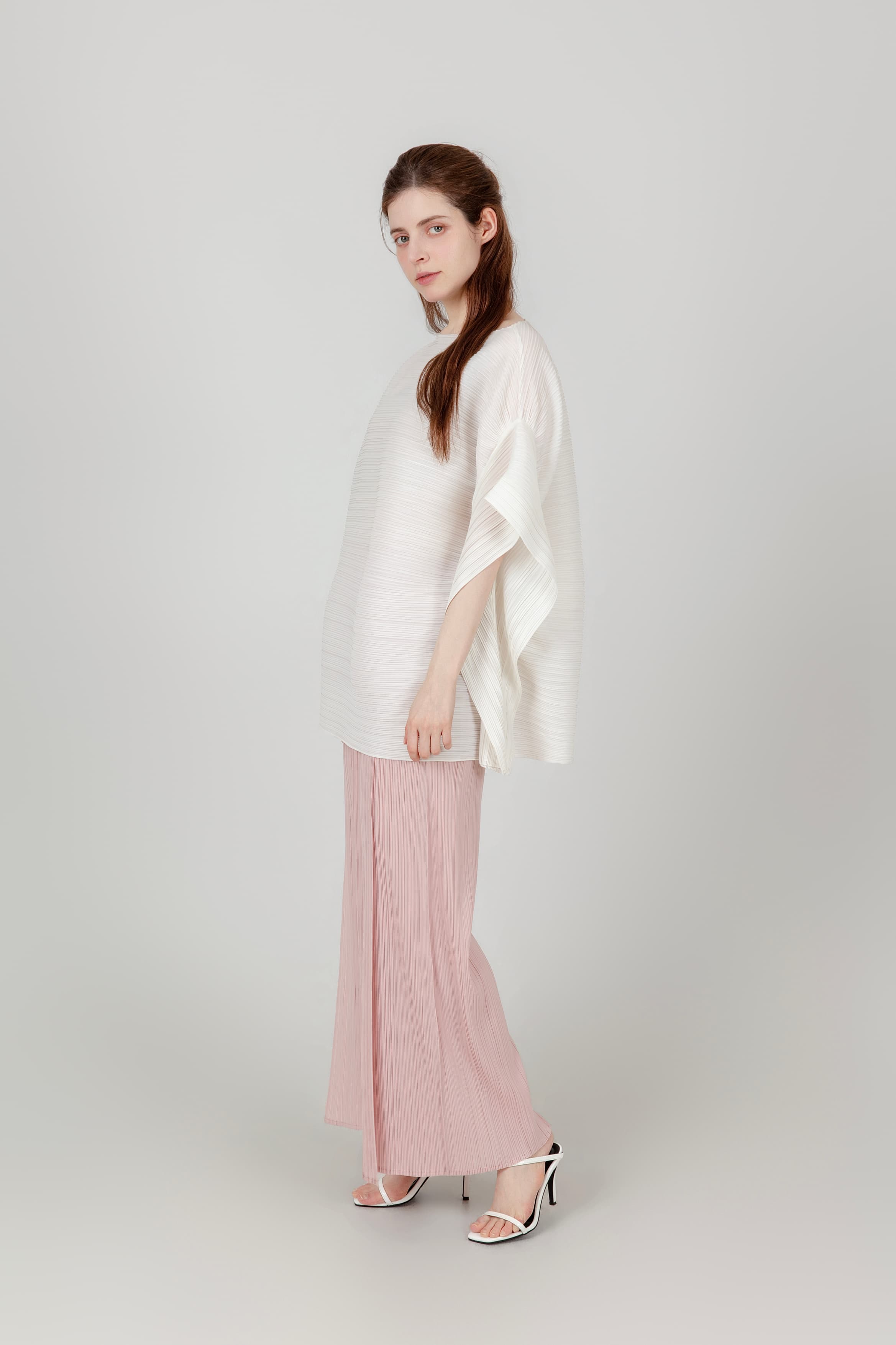 사선 벌룬 플리츠 팬츠