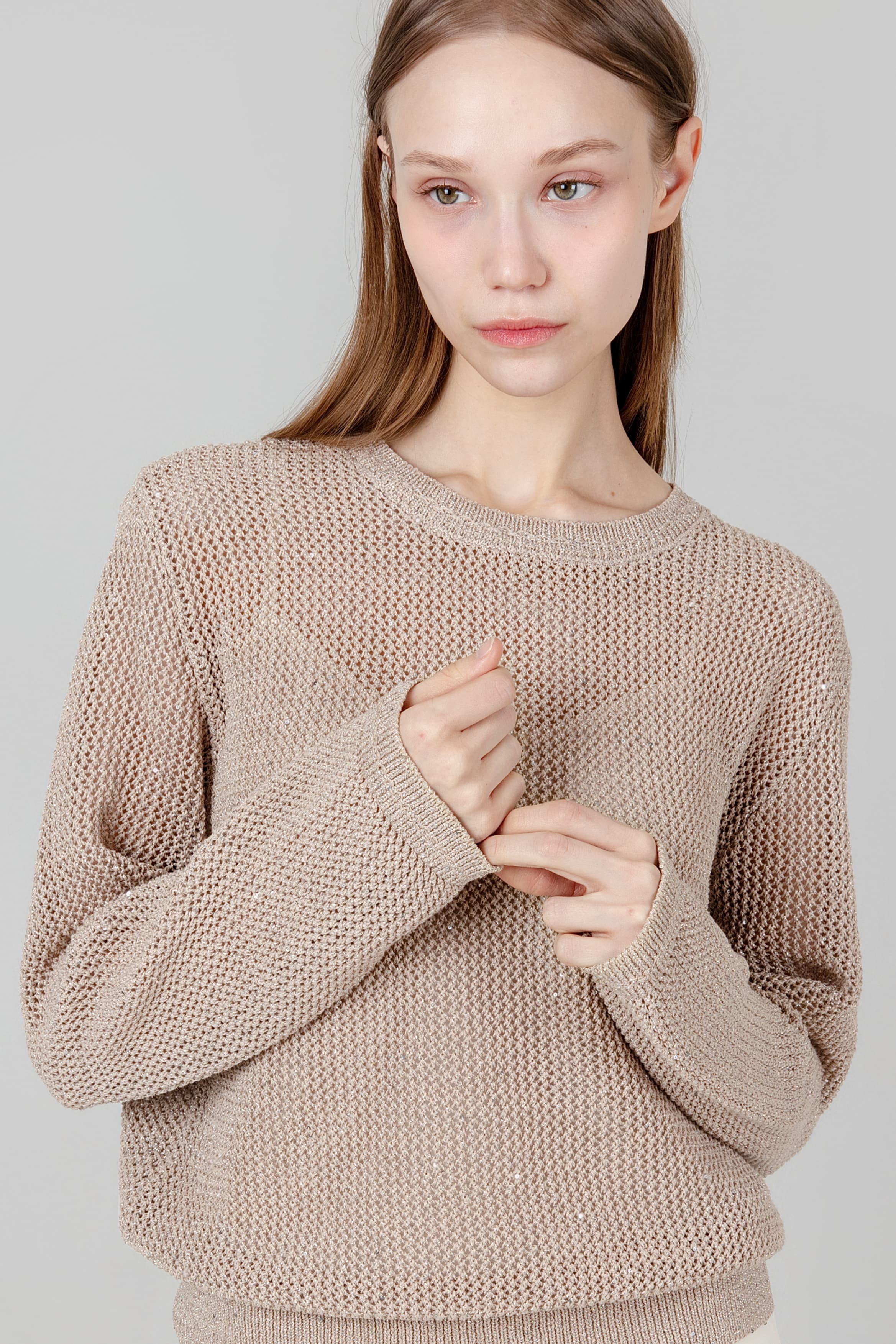 스프링 홀가 라운드 울 니트