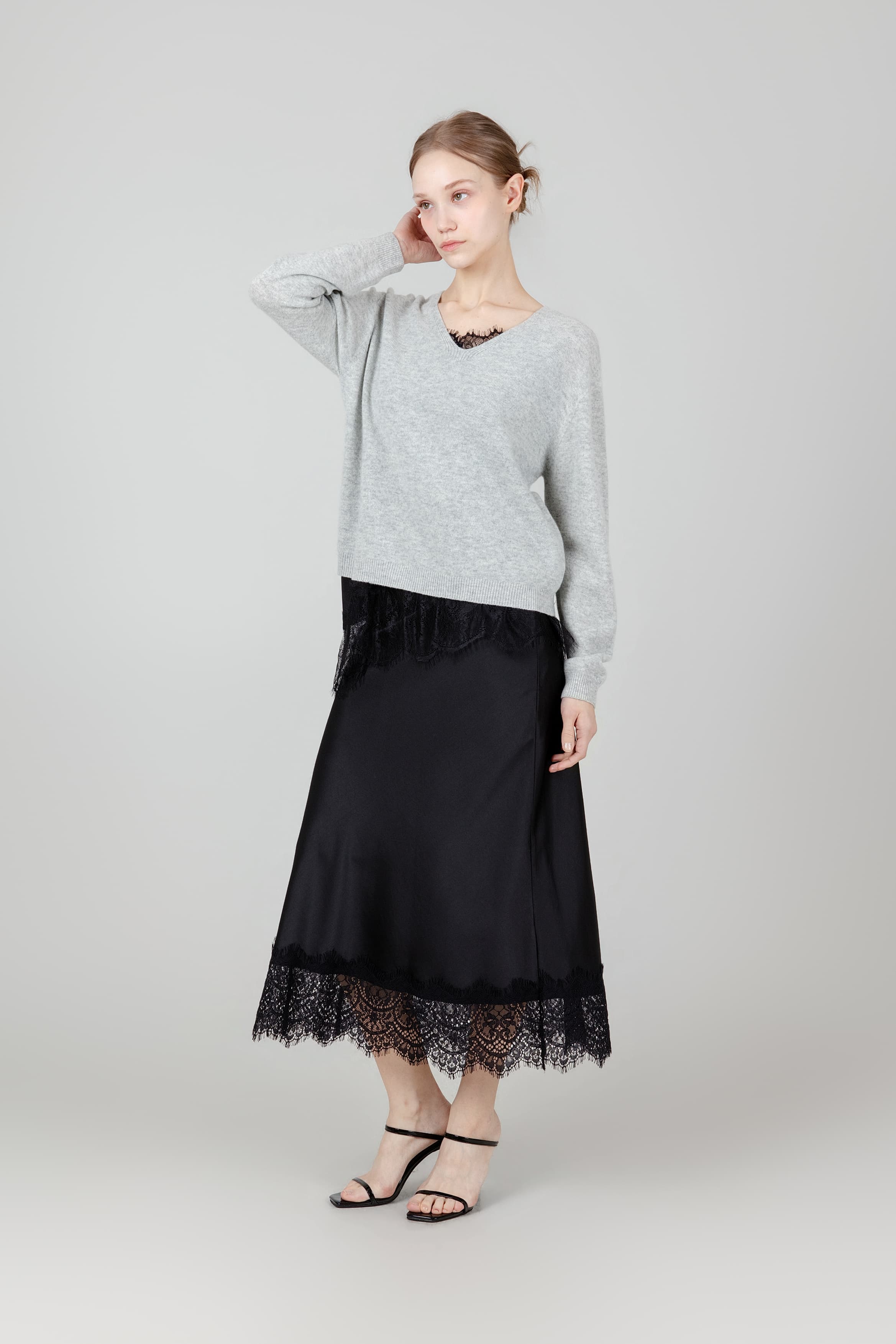 루즈 레이스 새틴 스커트