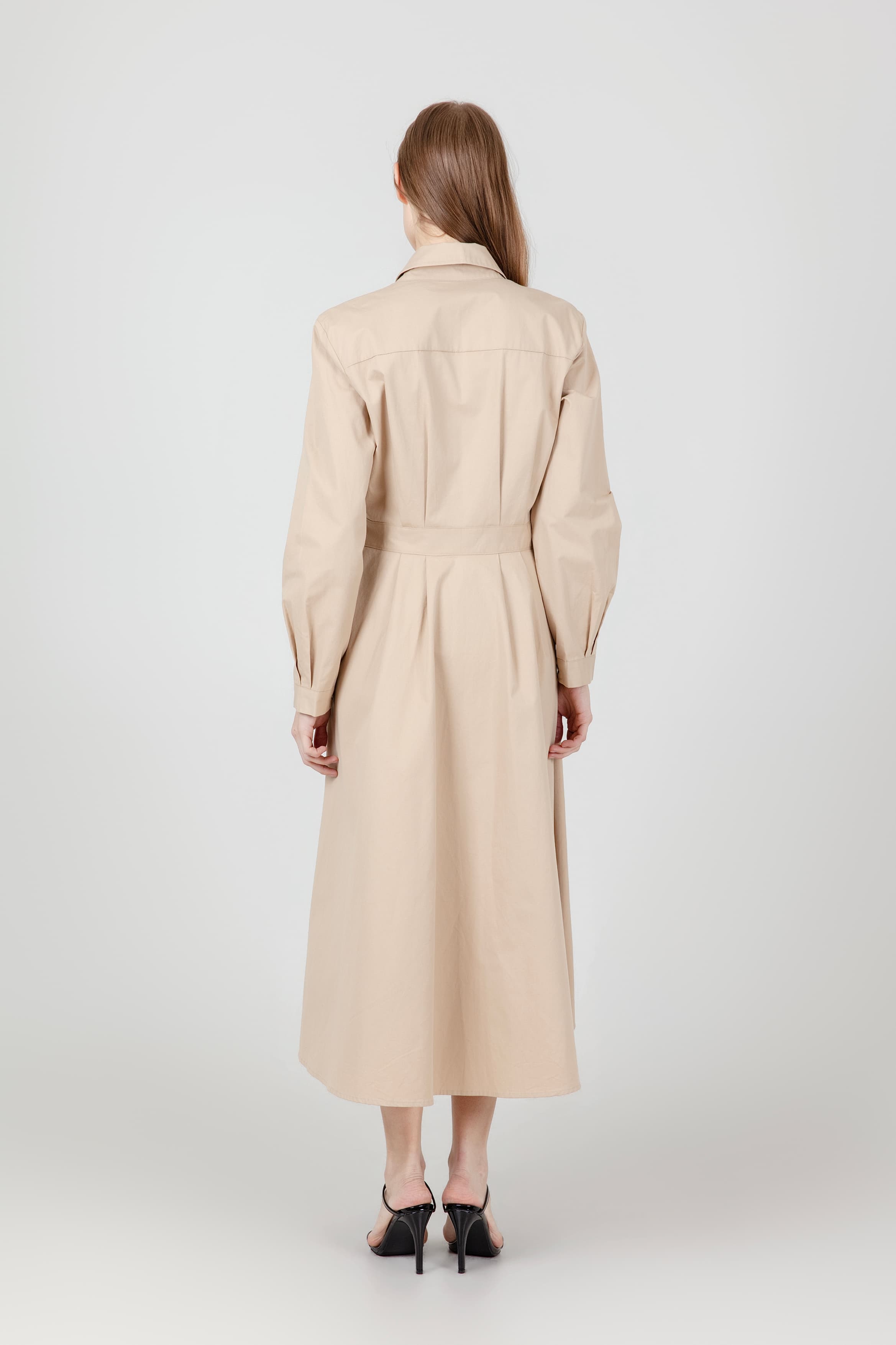트렌치 벨티드 플리츠 코트