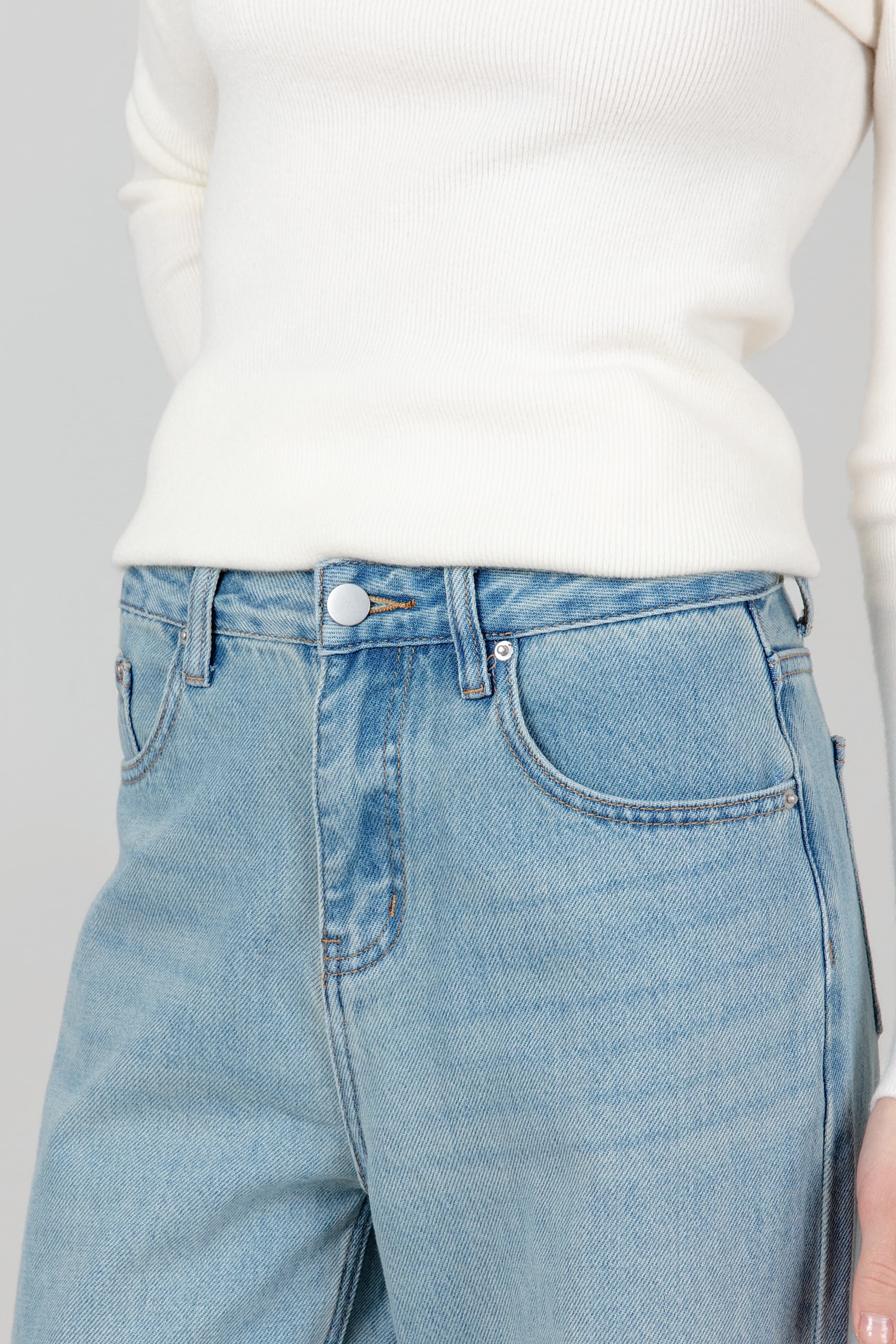 옆프릴 일자데님 플리츠 스커트