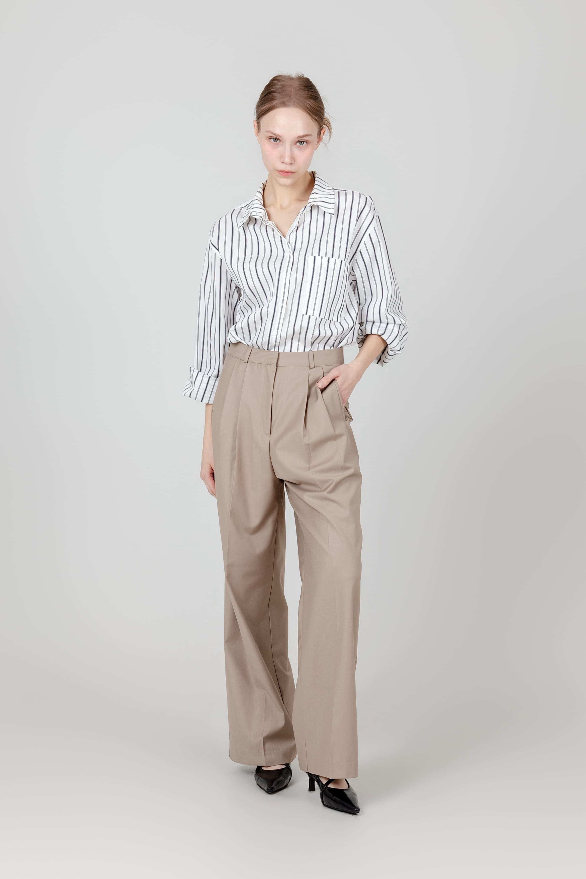사이드 윙 플리츠 팬츠